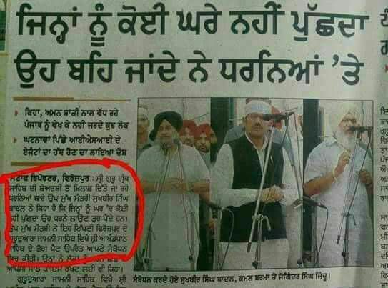 ਅਕਾਲੀ ਦਲ ਦੇ ਪ੍ਰਧਾਨ ਨੇ ਅਪਨੇ ਇਕ ਭਾਸ਼ਣ ਦੌਰਾਨ ਬੜੇ ਜੋਰ ਸ਼ੋਰ ਨਾਲ ਕਿਹਾ ਸੀ ਕਿ ਧਰਨੇ