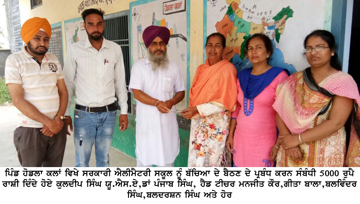ਪਿੰਡ ਹੋਡਲਾ ਕਲਾਂ ਦੇ ਸਰਕਾਰੀ ਐਲੀਮੈਂਟਰੀ ਸਕੂਲ ਵਿਚ ਬੱਚਿਆ ਦੇ ਬੈਠਣ ਲਈ ਫਰਨੀਚਰ ਦੀ